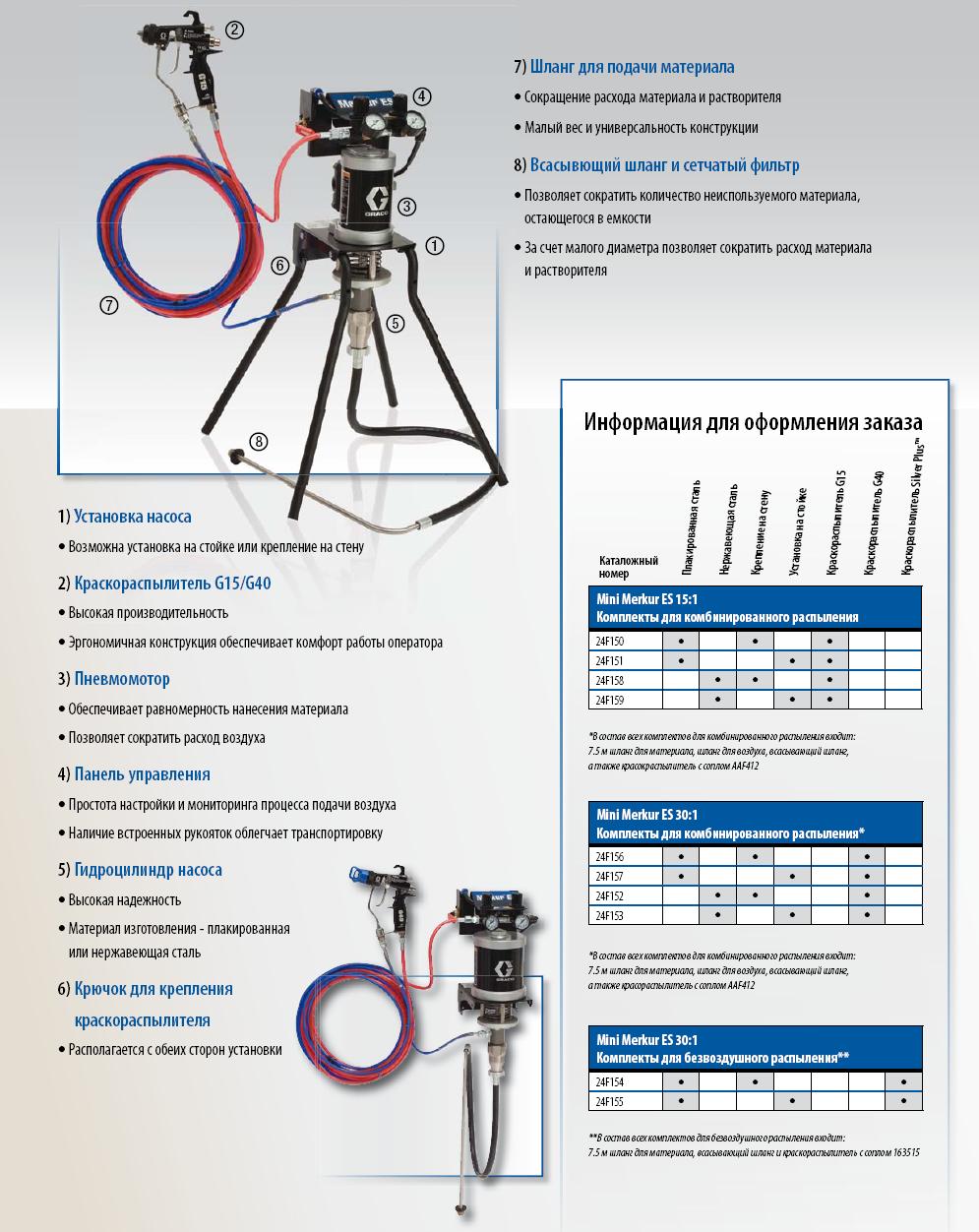 Фирма GRACO выпустила новый компактный аппарат безвоздушного распыления Mini Merkur ES. Аппарат выпускается с соотношением 15:1 и 30:1 в двух модификациях: