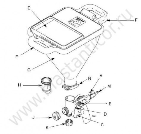 | K | Заглушка шланга | Необходимо установить, если Вы соибраетесь подавать материал из стандартной ёмкости пистолета. |
