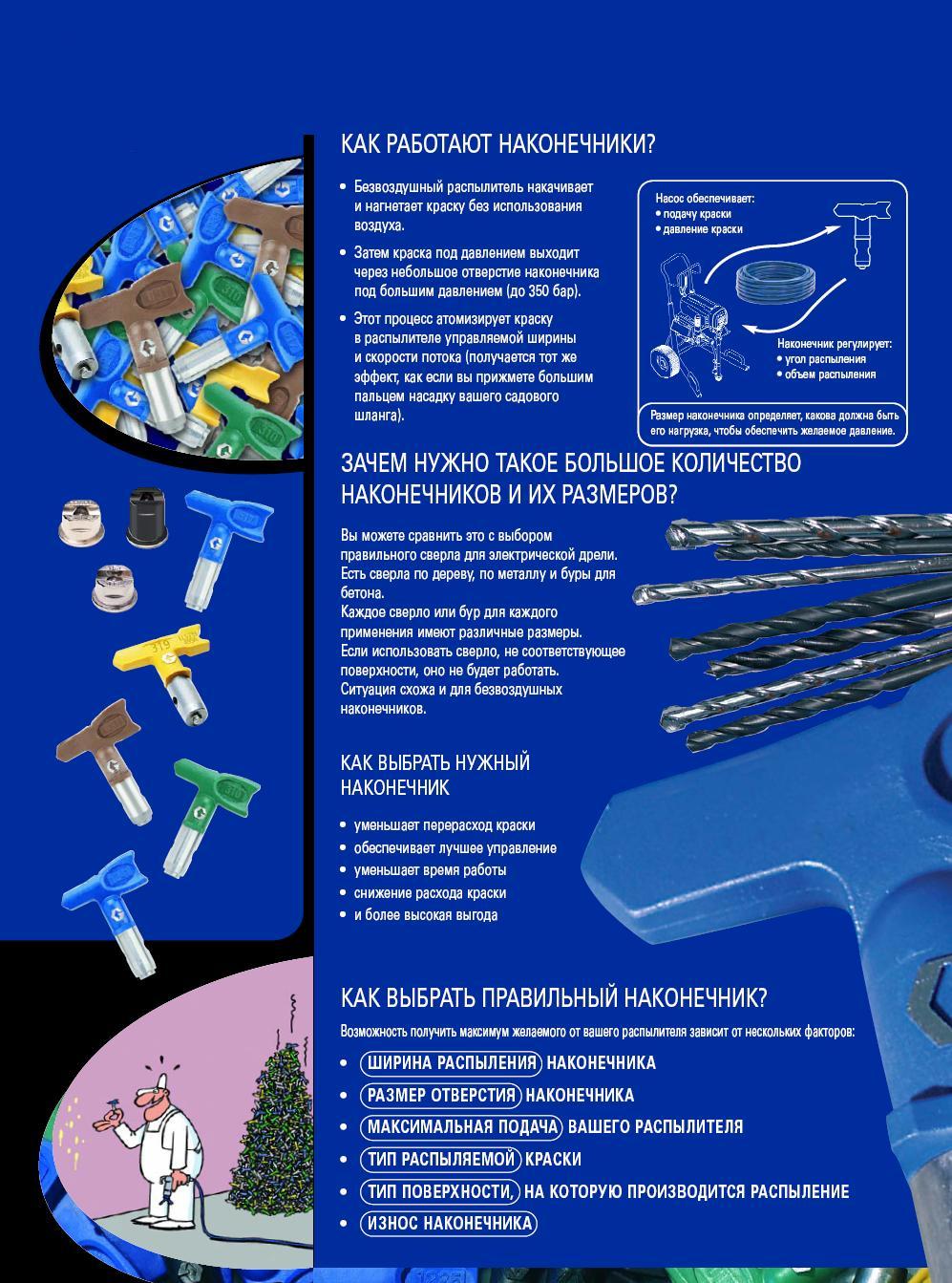Сопла (наконечники, флажки) для безвоздушного распыления необходимо правильно подобрать сопло перед началом работы для правильной окраски и экономии материала, а при неправильном подборе сопла могут появляться подтеки и перерасход наносимого материала.