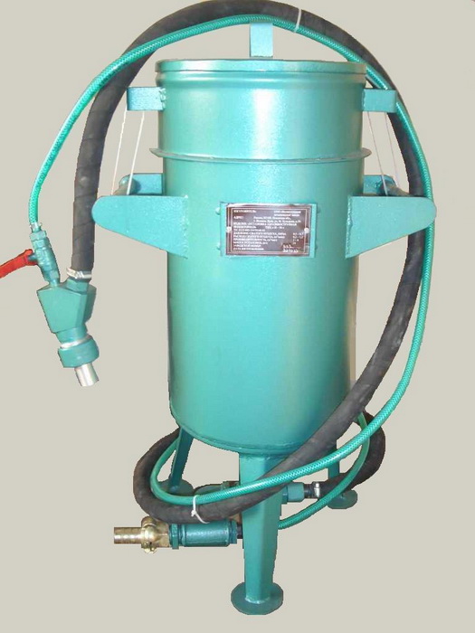Ручные пескоструйные аппараты инжекторного типа подходят для обработки тонких металлоконструкций, стекла и древесины. Они имеют невысокую стоимость и экономно потребляют сжатый воздух. Абразив принудительно подается воздушной струей в специальное сопло и струйный канал.