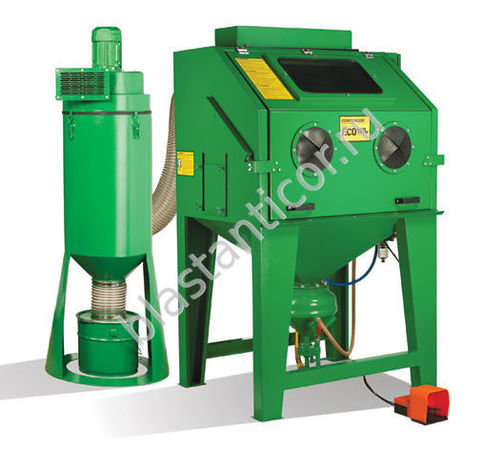 Кабина поставляется в готовом к работе виде.Цельнометаллическая сварная кабина с установленной на бункере системой формирования абразиво-воздушной смеси, абразивоструйный аппарат, перчатки RGS-600 не требующие крепежа к кабине, пнев-матическая система управления, пускоостановочная педаль, фильтр воздушной линии с ручным сбросом конденсата, отдельно стоящая фильтр-камера DC-390 с ручной очисткой фильтрующего элемента, филь-трующий элемент, вакуумный рукав.Кабины серии ECO в стандартной комплектации поставляются с ручной очисткой фильтрующего элемента. Фильтрующий элемент может быть очищен путём быстрого открытия/закрытия шарового крана. Или может быть отсоединён от фильтр-камеры и очищен вне производственных помещений.
