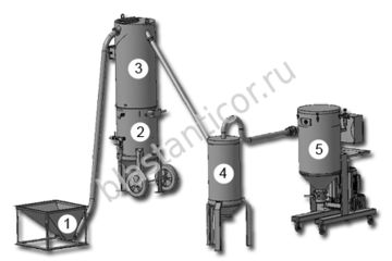 Схема расстановки в комплекте с приемным бункером и сепаратором циклонного типа |
